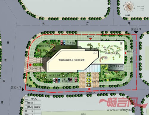 中国冶金地质总局二局办公大楼位于台西科技园区长汀路南地块,该地块作为企业总部和大型科技公司研发中心大楼的规划用地。西侧为祥坂支路及鸿祥苑,北侧为长汀路及福达小区,东、南侧为台西科技园区内的拟建办公大楼。