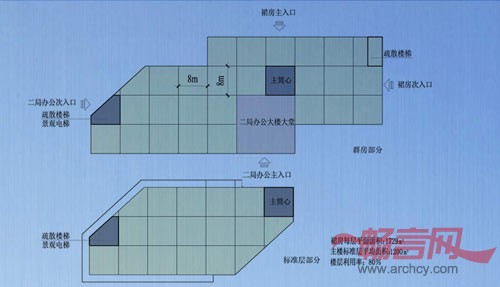 本方案由主楼、裙房组成。合理组织内部功能与交通流线。将不同功能、不同尺度的空间通过有机的组合,在满足功能的前提下,尽可能做到布局紧凑,联系方便。注重对外功能空间的设计,做到宽敞、舒适。合理组织建筑内部人流流线,使不同人流能方便到达目的地,避免内部人流交叉。