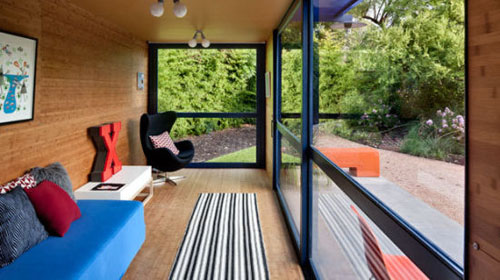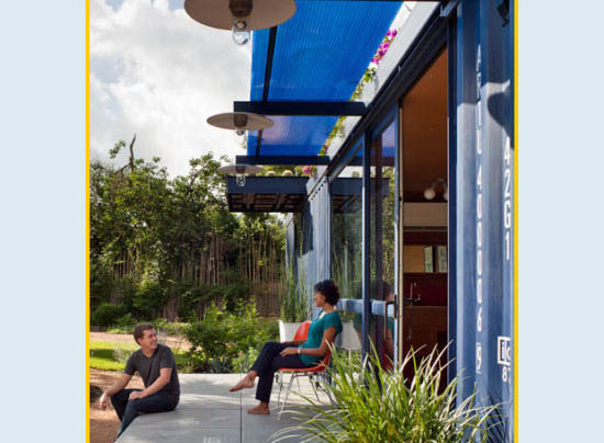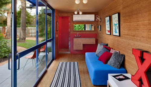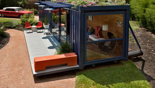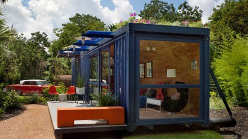 作为专为客人修建的房间,其构造无丝毫改动。一位居住在德克萨斯San Antonio前工业区一栋房子里的买家希望增加一个房间,便请Jim Poteet建筑师先利用传统航运舱来做试验。于是,一个既完美又宜居还带卫浴的增加出来的集装箱客房就这样诞生了。房间内部的现代化设计和装璜巧妙地弥 补了金属质地原始功能的不足,也使得房间外部看起来极具贵族气质。