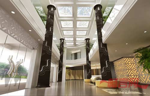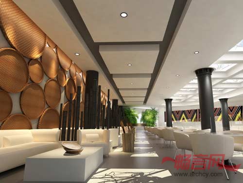 一楼:大堂、餐厅和展览区,是一个国际酒店应有的基本功能组合。展览区对着户外的泳池和花园,反映的是当地热带的自然环境,边上的休闲座位可以让客人在喝东西的同时欣赏美景。大堂设计简约雅致,设有客户接待和结帐处,通过推拉折叠门很容易把客人引导到餐厅内,或紧密相接的户外区域。