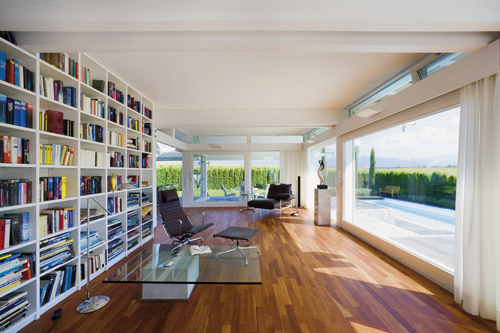图6 室内空间自由流动,通透明亮, 大面积玻璃窗将室外风景引入室内