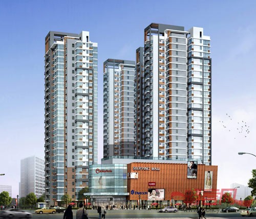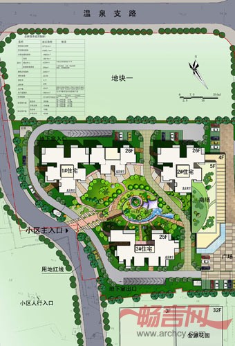 1.总体布局的设计突出高层住宅区和商业部分的协调,和对城市空间环境的融合与贡献,使之形成一个整体感强的沿街居住、商业形象。具体设计从道路流线,景观布置、布局、里面入手,优化场地内部空间和城市界面。