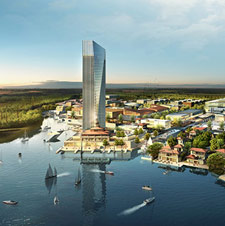 与建筑设计风格相协调一致的现代主义景观设计风格。地域内涵与国际化兼容并蓄的滨海国际的景观设计主题。