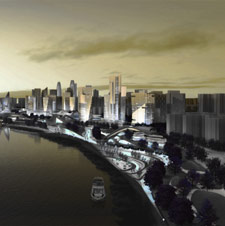 规划的目标,是利用大规模的连续公共空间、多样化且风格前卫的建筑形式、新型的服务产业和绿色宜居社区的设计,打造一座具有现代海滨城市形象的新城。同时