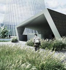 结合城市空间,将建筑线条与符号融进景观设计中,从而营造具有整体、和谐的地标性现代人文景观环境。在以上三个区域景观设计中,设计师同样选择了具有现代