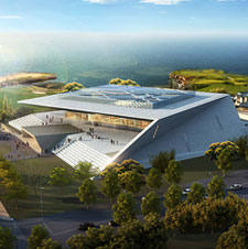 项目位于青岛两个重要的文化节点,青岛大剧院与奥林匹克帆船中心之间,北临崂山国家森林公园,紧靠青岛海洋公园。设计从传统建筑中抽取元素,进行类型化和