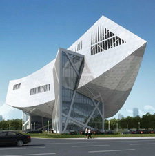 深圳这座新兴城市的众多高层建筑不乏大胆创意之作,从市民中心引出的中轴线西侧,城市图书馆和江苏大厦已经形成一种关于“切角”和“折面”的良好拓扑关系