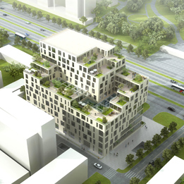 项目位于临沂市北城新区。方案以一个大型的城市下沉广场为中心,将商业区,办公区,公寓区合理的组织在一起,整体形态采用空间中轴对称布局,以响应地块所