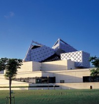 美术馆位于西子湖畔,背靠苍翠的玉皇山麓,建筑依山傍水,环境得天独厚。总建筑面积31550㎡,其中地下15338㎡,地上16212㎡。 建筑依山形