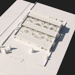 2012年6月殊舍建筑以第一名中标获得房山中心幼儿园项目设计。此幼儿园采用南北三排布置生活单元,由南向北依次退台升高。北面生活单元可以利用南面的