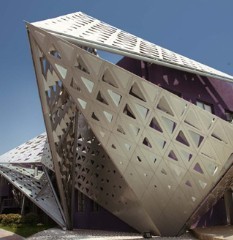 本建筑设计从建筑室内空间需要和造型出发,结合企业产品特点,将多晶硅矿石的造型和现代化的审美情趣结合,打造出别具一格的建筑空间体验,利用太阳能节能