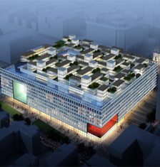 本项目位于朝阳区酒仙桥区域。原为八七八厂区,紧邻北京自发兴起的著名的文化产业基地——七九八文化产业区。建筑以“集装箱”为元素,体现厂区所特有的工