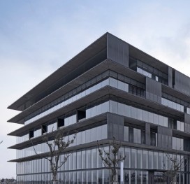 这是一栋集办公、研发和生产功能为一体的复合型办公楼。设计采用“方”与“圆”的形体与景观构图,影射古代阴阳学说对于空间的哲学理解。