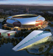 位于湖州南太湖奥林匹克湿地公园东侧的滨水商业区犹如一条蜿蜒的曲线延伸到娱乐区并与住宅区地块相连接。在举行省市大型体育盛会期间,位于酒店间的中心广