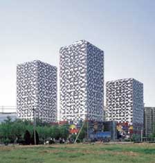 这是一个综合体建筑。建筑物的底层是百货公司,上面三个塔是住宅。建筑的主题是“马赛克”。它的外部,室内,内饰和景观都采用马赛克。用马赛克组成了具有