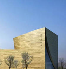 四川美术馆位于成都天府广场片区。作为东方艺术的“容器”,我们在设计中充分借鉴了中国传统“如意”的造型精髓。建筑东南角“裂”开一个“豁口”,形成有