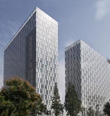 项目位于杭州天目山路,利用基地自然条件,沿街设置板式高层,围合出北向相对安静的内院,下沉庭院不仅有效解决地下室通风采光,同时也丰富室内外空间。