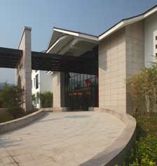 设计充分利用场地内3米高的自然高差形成不同台地,各单体依山就势进行布局,保留了原有坡地自然景观,形成丰富的高差层次,达到错落有致的空间意境。