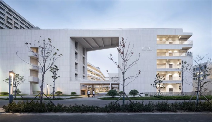 江苏省靖中是一种剖面化的学校。模糊了建筑立面界面的存在,让建筑与建筑、建筑与人形成了一种互动的暧昧状态。不明确的界面也是在鼓励自由流动和特定场所