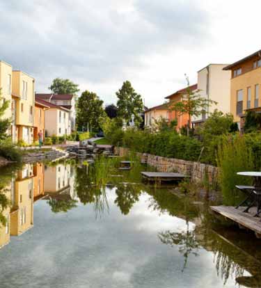 Arkadien Winnenden原本是德国斯图加特郊区的一个厂区,现在被改造成风景优美的生态住宅村。项目于2012年春季完工,项目包涵公园、