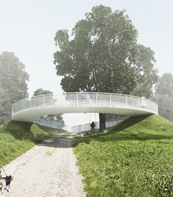建筑设计公司为瑞典斯德歌尔摩的耶而费拉公园设计了一条螺旋式的人行道。与通常设置在景观旁边的常规人行道不同的是,这条人行道有一个被抬高的环形段,而