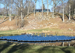 著名日本艺术家草间弥生为1966年威尼斯建筑双年展设计的浮球(1966年版的浮球是由银色塑料制成)如今在美国康乃狄克州重现,被布置在了建筑师菲利