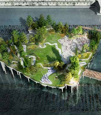 英国设计师Thomas Heatherwick完成了纽约哈德逊河漂浮岛公园的构想。根据计划,一万平米的55号码头奖取代失修的54号码头,结合表演