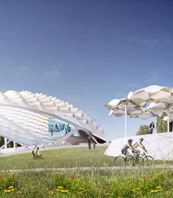 ASYMPTOTE建筑事务所受委托设计位于意大利山城Peccioli的天使公园项目。该综合项目包含一个具有顶棚的800座位剧场和多功能互动型雕塑