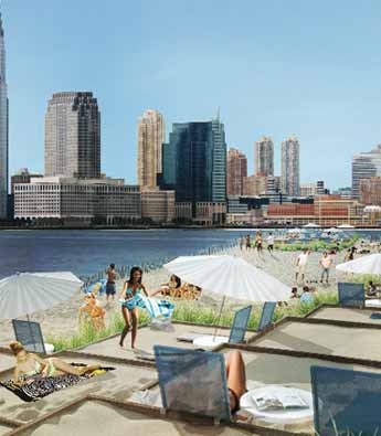 Workshop/APD公司及Craft工程公司构想了纽约曼哈顿城市海滩项目。项目方案是沿着纽约中央区域的哈德逊河建造一条漂浮沙滩。项目位于一条