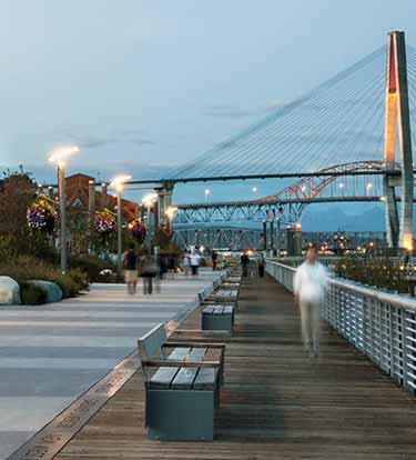 新威斯敏斯特码头公园直接通往市中心,同时赋予城市核心区和码头水岸区新的活力。公园获得了三项环境嘉奖,占地3.84公顷,沿Fraser河岸而建,建