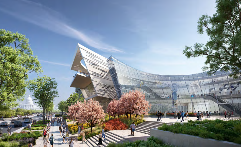 项目面向华盛顿特区的国家广场,通过学习和展览空间、公共天文台和餐厅,旨在丰富学生和其他群体的想象力。项目的概念性方法和愿景受到了螺旋星系形状的启