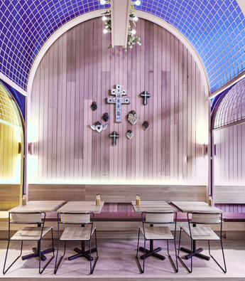 业主要求采用原黄色调,营造明亮和欢快的美感,同时融入地道墨西哥小饭馆的情调。整体设计仿佛一个露天市场,风格上很明显受到了墨西哥德高望重的极简主义