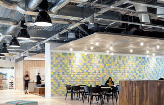 MoreySmith工作室完成了爱尔兰都柏林Primark总部办公楼室内装饰。业主是一家平价时装零售商,墙面装饰利用了回收的购物袋和衣物标签。总