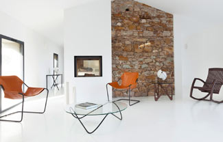 建筑师Michael Menuet将法国南部的一个谷仓改造成Objekto家具办公室和展示厅。项目墙面中光滑的白漆和粗粝的石材构成反差。项目位于