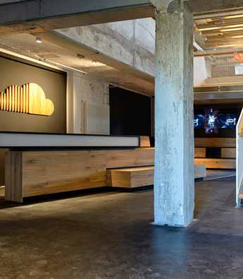 德国KINZO工作室将柏林一座啤酒厂房大楼中的三层改造成音乐流媒体公司Soundcloud公司总部。项目位于Mitte区,毗邻柏林墙,办公室容纳