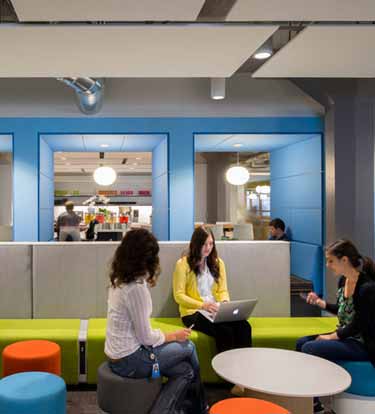 Twitter总部位于美国旧金山一座1937年代的老建筑中。公司总部设有色彩明亮的家具、覆盖柔软装饰材料的工作间、游戏室和巨大的屋顶露台。项目的