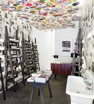 纽约切尔西区AESOP品牌专卖店的天花板上覆盖了一千份《巴黎评论》文学杂志。专卖店离杂志纽约总部办公室仅相隔几条街。品牌创始人Paphitis表
