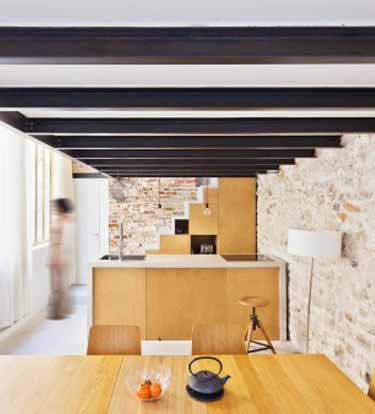 公寓位于西班牙马德里,面积为58平米。Elii建筑工作室将地面上所有障碍移除,实现了空间灵活性。设计方案有两个重心:其一,包含楼梯、置物架和储存