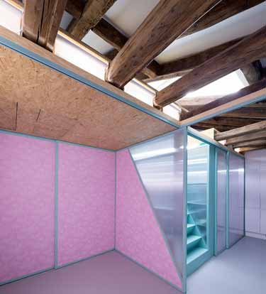项目坐落于巴黎20区的一个后院旁,这座艺术家工作室(13×3.5×5m)被改造成起居空间。空间被划分成三个半层,分别具有合理的功能。卧室是真正的