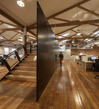 Landini Associates建筑事务所将位于澳大利亚Collingwood一处工业仓库改造成T2公司新总部。设计方案在尊重原有建筑的同时