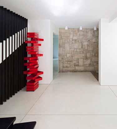 以色列建筑师Pitsou Kedem改造了一座位于特拉维夫的1950年代住宅,赋予其一面作为隔断的粗砺的砂岩墙壁。原住宅由以色列著名当代建筑师D