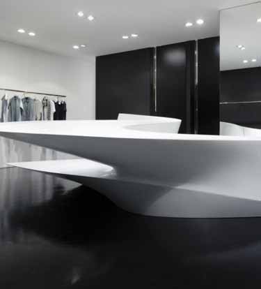 扎哈·哈迪德建筑事务所设计了位于韩国首尔的尼奥·贝奈特高级时装店“Shop in Shops”。时装店的设计概念基于分割成十六份的黏性展示物,该