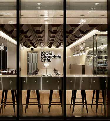 日本设计师Masamichi Katayama完成了100% Chocolate Cafè咖啡馆的设计,咖啡馆的室内装饰工程今年早些时候已经完工