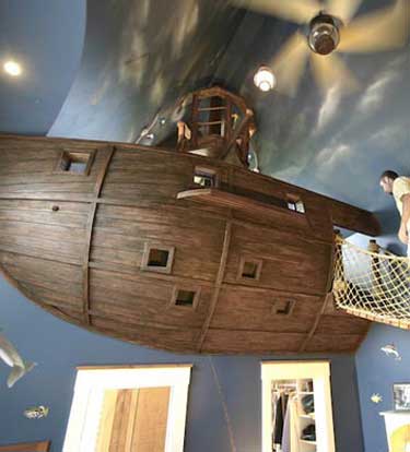 由Steve Kuhl设计,受海盗激发灵感的卧室几乎满足了所有年龄段海盗迷的梦想。卧室的设计构思独特巧妙,人们可以抛开一切恐惧,重新变成孩子:从
