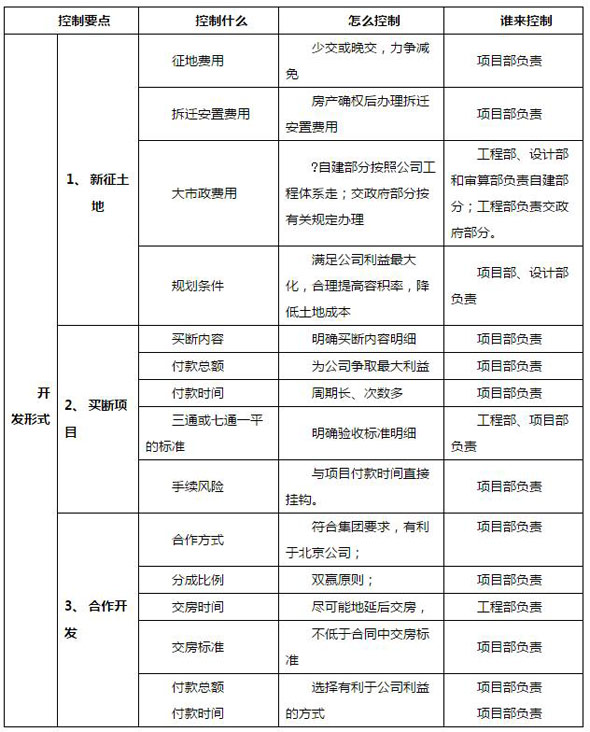 立项环节的成本控制根据项目开发方式的不同而有所区别。该环节由于有国家多项法规政策的限制,运作时灵活度较小,基本原则是在国家规定范围内最大限度地控