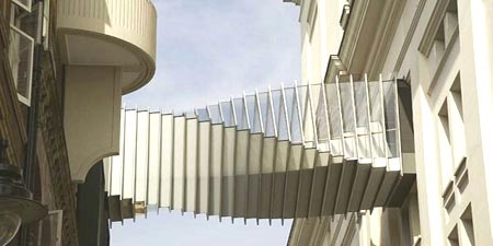 只有意大利才会拥有这样美丽颜色的房子,它是用水泥和木头的材质做成,一个迷人的红色长廊将两个不同功能的建筑链接,而不同的材质用以表明不同的用途;房