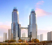 该项目的总建筑面积约为270,000平方米,包括:1幢42层高的精装修的五星级酒店,客房数为350个左右;2幢27至28层高的精装修的办公楼;3