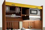 Mobilspazio Contract迷你厨房提供多种款式、尺寸和色彩,宽度从50英寸起。整个迷你厨房可以通过几种不同式样柜门关闭,包括卷帘门