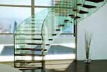 Siller楼梯FLY系列踏步采用木材、玻璃和石材三种材料,栏杆采用全玻璃材料。产品型式是落地式弧形楼梯。木质楼梯配合钢材核心组成自支撑楼梯构造