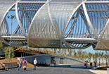 位于马德里,横跨曼萨纳雷斯河到达城市公园。由一对圆锥结构组成,外部包裹互相交织的金属丝带。透气的设计让自然光可以穿透树叶直达公园内部,并沿着桥梁